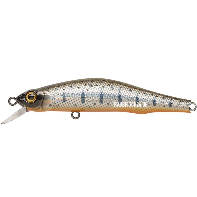 Der ZipBaits Orbit 80 SP-SR ist ein 8 cm langer und recht schmaler Hardbait, welcher sich perfekt zum Twitchen eignet. Diese Größe deckt über den Jahresverlauf alle vorkommenden Futterfische gut ab. Durch seine schwebende Aktion (suspending SP) sollte man – je nach Aktivität der Fische – einige Pausen einbauen. In diesen bleibt der Orbit verführerisch auf der Stelle stehen. Während der Twitches flankt er perfekt von rechts nach links. Bei sehr harten Twitches vollführt er unkontrollierte Kunststücke und kann dadurch eventuell den unentschlossenen Verfolger zum Biss verleiten. Beim monotonen Einholen entwickelt der Orbit eine schöne rolling-Action! Dabei taucht er je nach Führungsstil auf 0,8 – 1 m ab (SR – shallow runner) und eignet sich perfekt für flache Gewässer oder wenn die Barsche in den oberen Wasserschichten aktiv sind.